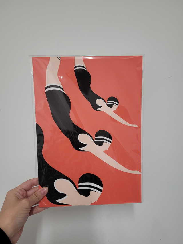 This print comes packaged in a cellophane bag with cardboard backing.