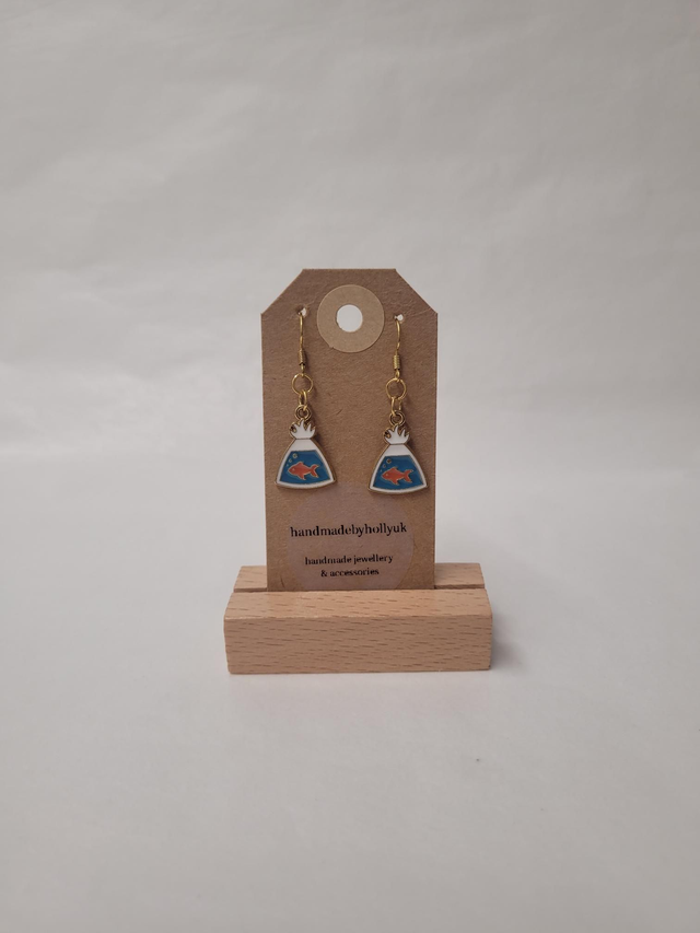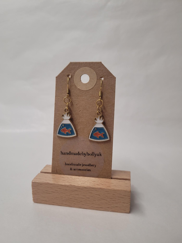 These cute goldfish in a bag charm earrings would make a lovely gift for someone who loves quirky earrings!