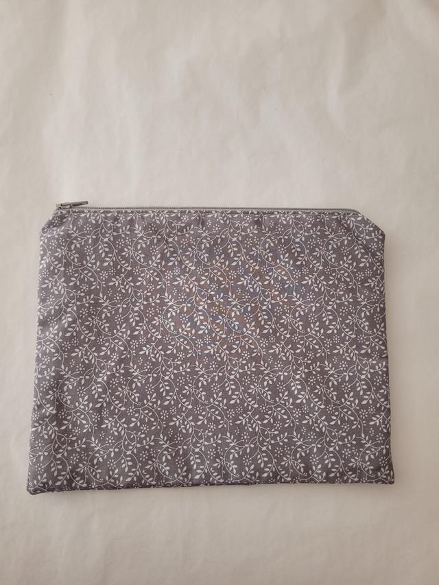 Grey and white floral zip makeup pouch - 100% cotton - HBH-001