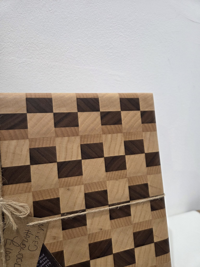 This mixed hardwood wooden chopping board is a perfect statement piece for any kitchen! Made using walnut, ash and beech to create this beautiful pattern and finish.
