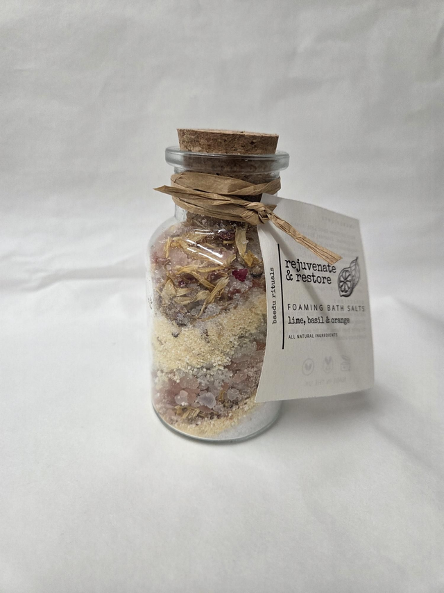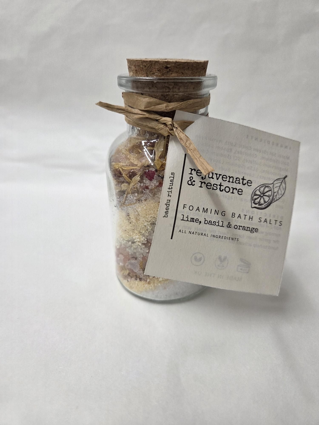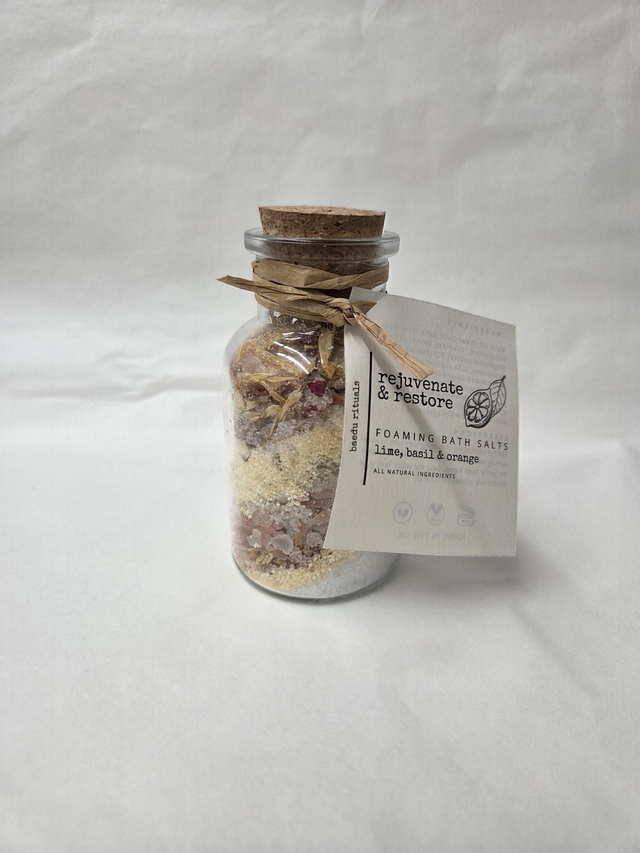 Rejuvenate & Restore Botanical Foaming Bath Salts - Lime, Basil & Orange.