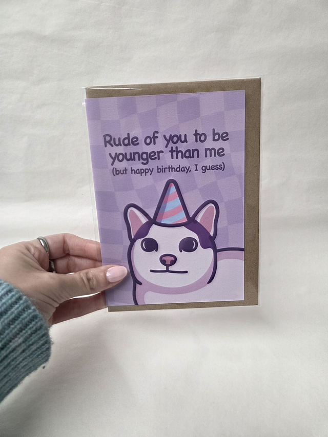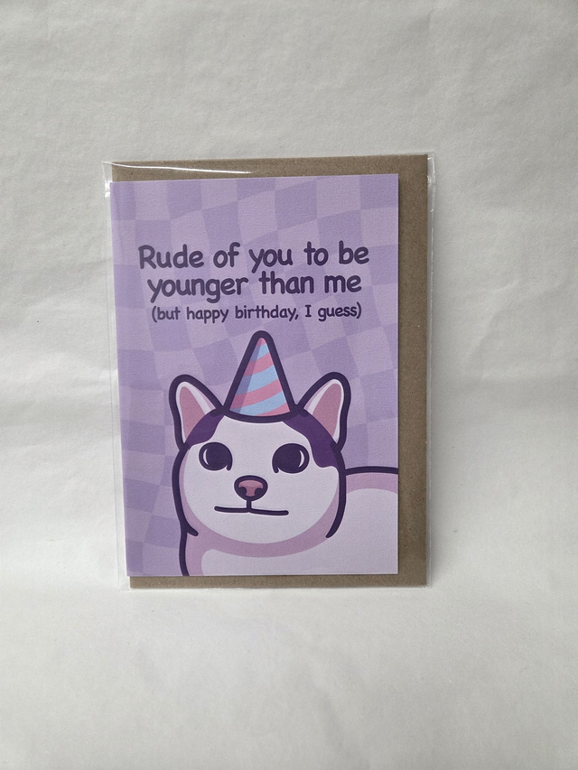 'Rude of you to be younger than me. (but happy birthday, I guess) birthday card.