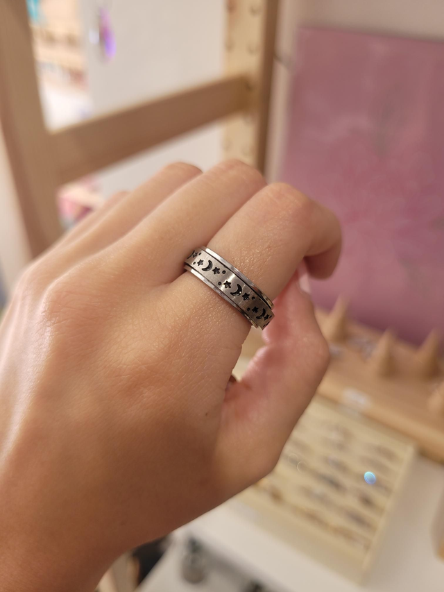 Stainless steel moon and stars spinner fidget ring - Size O - SL-050