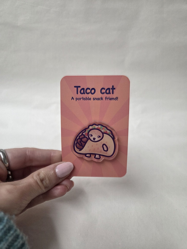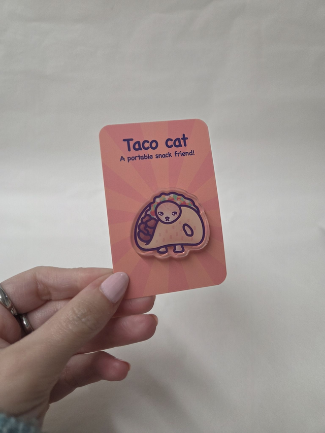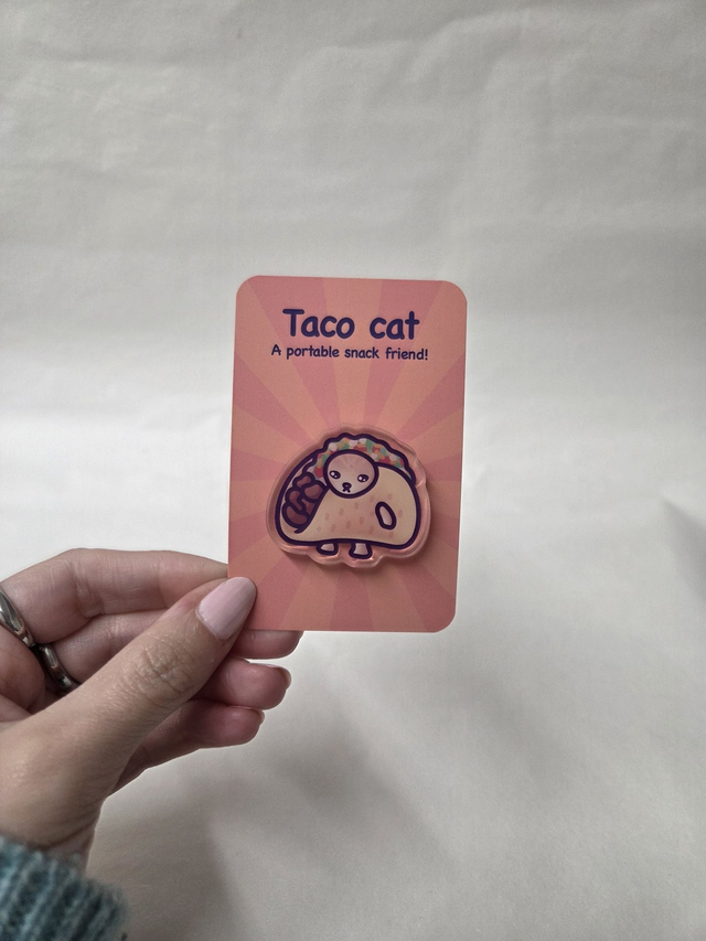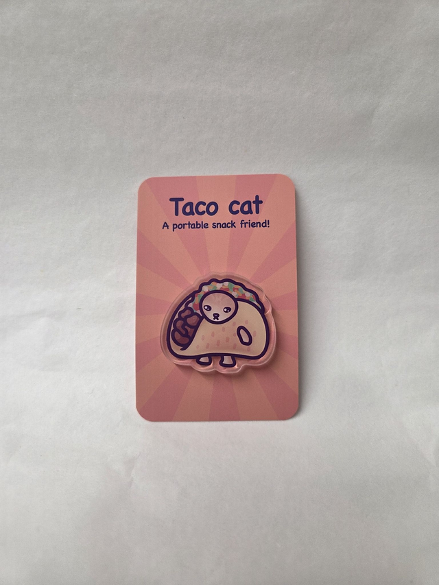 Glossy Acrylic Taco Cat Badge.
