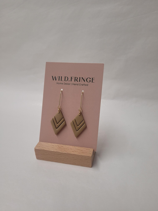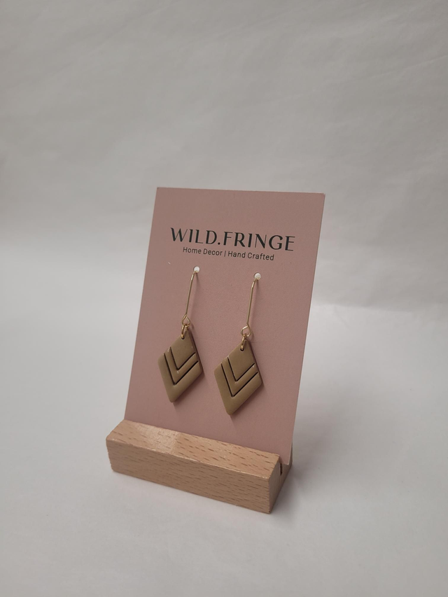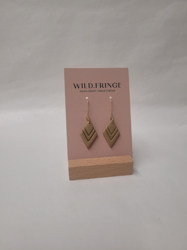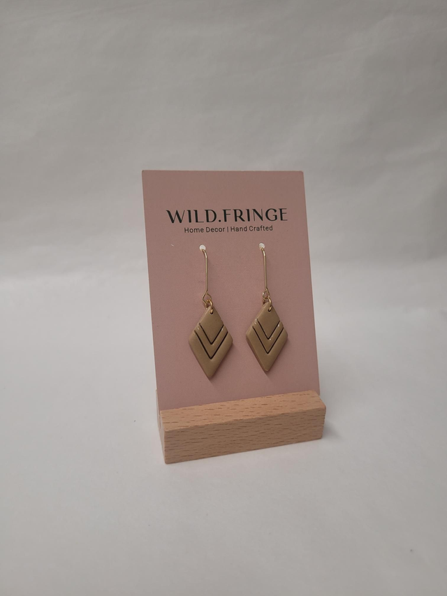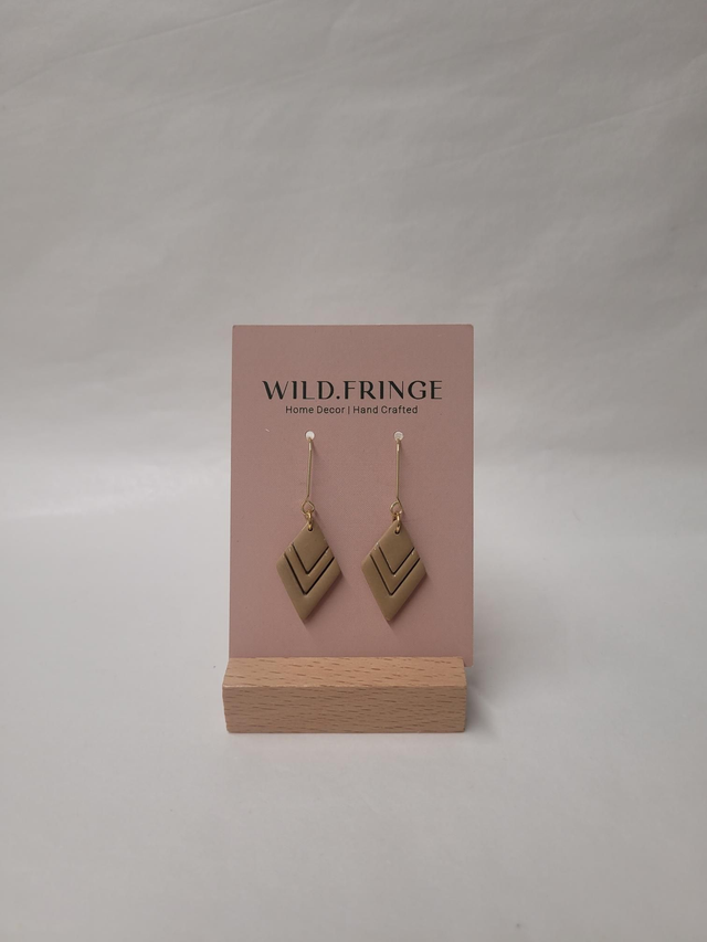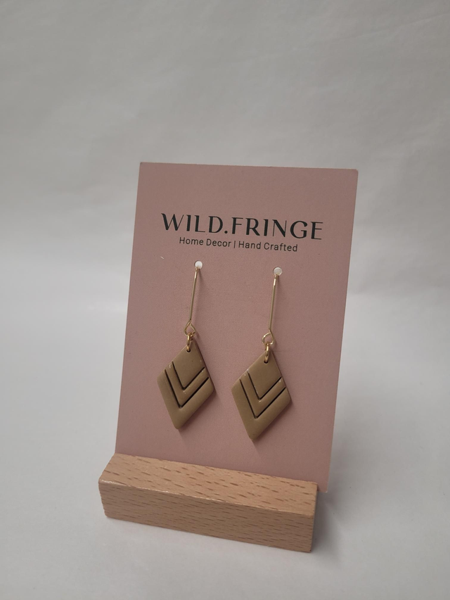 Polymer clay diamond shaped charm drop earrings. Featuring an 18K gold plated long line earring hook.